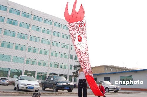 喜迎奧運(yùn)圣火 “祥云火炬”風(fēng)箏濰坊試飛(4)