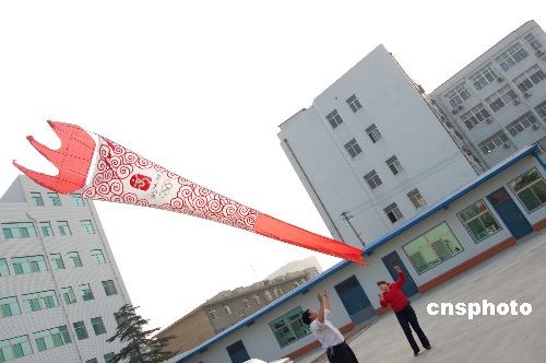 喜迎奧運圣火 “祥云火炬”風箏濰坊試飛(5)