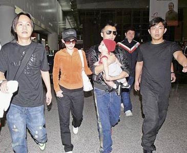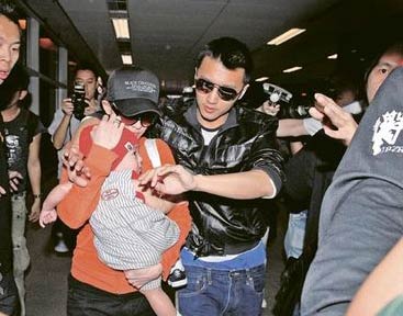 據(jù)香港明報(bào)報(bào)道,霆鋒與柏芝帶著兒子Lucas(謝振軒)前晚10時(shí)許由曼谷返抵香港,雖得4名保安開路,但難敵現(xiàn)場數(shù)十名守候的記者。霆鋒雙手抱著Lucas,柏芝的手還是要挽住霆鋒的手臂不放。