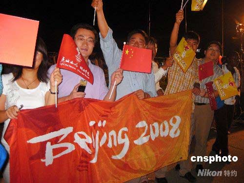 組圖:海外同胞支持北京奧運(yùn) 護(hù)衛(wèi)圣火傳遞 (5)
