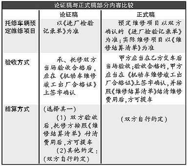 汽修合同范本今起推行