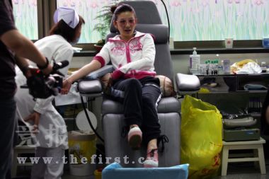 等候獻(xiàn)血的時(shí)候,黃奕說(shuō):“希望災(zāi)區(qū)的人民能順利渡過(guò)難關(guān),政府也在極力給予幫助,所以一定要堅(jiān)持下去!秉S奕笑著表達(dá)了自己的心愿:“一切都會(huì)好起來(lái)的,奧運(yùn)會(huì)也一定能順利舉辦!背檠(yàn)的時(shí)候,黃奕一臉輕松,“沒(méi)事,就像被蚊子咬了一下!闭麄(gè)獻(xiàn)血的過(guò)程,看不出黃奕有絲毫的緊張,甚至和周?chē)I(xiàn)血的人們聊了起來(lái)。此外,她還“勒令”身邊的同事:“你也去獻(xiàn),快點(diǎn)快點(diǎn)。”獻(xiàn)血完畢,黃奕輕松地走出來(lái),身后還有被她要求獻(xiàn)血的同事,說(shuō):“我也獻(xiàn)完了!