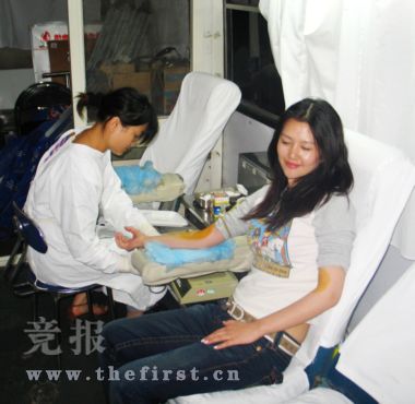 在紅十字血液中心,自發(fā)來(lái)獻(xiàn)血的大多是大學(xué)生和中年人。坐在等候室里,看到平時(shí)難得一見(jiàn)的明星,很多人紛紛掏出相機(jī)、手機(jī)給藝人們拍照。有位同學(xué)對(duì)記者說(shuō):“雖然平時(shí)也很關(guān)注他們,但是今天是為獻(xiàn)血而來(lái)的,沒(méi)想到能看見(jiàn)這么多明星!