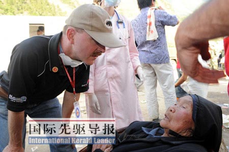 本報(bào)記者楊磊在北川縣城外的山路上見到孫柏安時(shí),他看上去正處于一籌莫展中。一名受傷的老人急需治療,但面對(duì)孫柏安和同伴要幫忙的表態(tài)卻連連擺手。“中國(guó)的那個(gè)老太太大概很少見到外國(guó)人,所以不愿意讓他診斷!币环徽勚螅咸派狭酸t(yī)療車。
