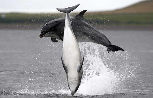 旁觀者在看到瓶鼻海豚跳水嬉游的景象時經(jīng)常會誤認為他們在觀看一場精心設計的演出,但對于那些在船上近距離觀看海豚的人們來說,海豚跳水嬉游的景象很自然,它們完全是率性而為。那些幸運的游客可以看到三頭海豚在藍色的天空下跳水、海豚捕食鮭魚的跡象。一位乘船觀看海豚的游客稱:“這真是難以置信,我們與它們那么接近,這看起來好像是它們試圖想向我們展示它們的能力。它們動作的協(xié)調(diào)性難以置信,你有時會認為它們會撞到一起。觀看它們捕食鮭魚是一件更棒的事情!