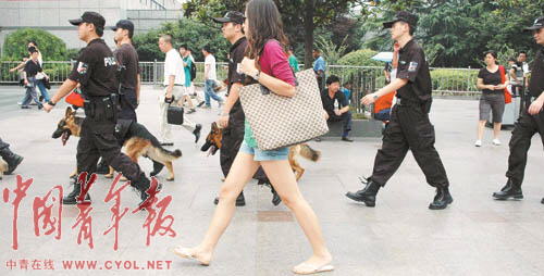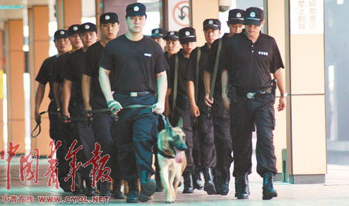 奧運(yùn)會(huì)即將舉辦,突發(fā)事件隨時(shí)可能發(fā)生。為此,上海鐵路警方調(diào)集鐵警精銳進(jìn)駐上海站,并成立了鐵路上海站奧運(yùn)安保前線指揮部。7月以來,鐵路特警全副武裝攜警犬在上海站、車站廣場(chǎng)及與地方接合部晝夜進(jìn)行巡邏檢查。