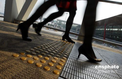 9月3日,北京首都機(jī)場(chǎng)涉及15個(gè)大項(xiàng)1400處無(wú)障礙設(shè)施的改造已全部完成,這座國(guó)際機(jī)場(chǎng)完全可以滿(mǎn)足殘奧會(huì)和殘疾旅客的使用需求。所有樓梯、直梯前粘貼了6200塊盲道提示貼,在殘疾旅客經(jīng)過(guò)的樓梯鋪設(shè)了5000米黃色防滑提示條。在殘奧會(huì)期間,首都機(jī)場(chǎng)還為需求輪椅的旅客設(shè)置了輪椅存放區(qū),旅客可以隨時(shí)免費(fèi)領(lǐng)取使用輪椅。此外,首都機(jī)場(chǎng)還專(zhuān)門(mén)將2號(hào)航站樓01號(hào)遠(yuǎn)機(jī)位大棚用于殘奧團(tuán)隊(duì)保障的專(zhuān)屬區(qū)域,由此,旅客減少了換乘直梯的次數(shù),時(shí)間上節(jié)省40%,提高了保障效率。在9條殘奧專(zhuān)用安檢通道上,每個(gè)安檢現(xiàn)場(chǎng)都設(shè)有封閉的殘疾旅客私密檢查間,內(nèi)設(shè)殘疾人坐椅、衣物筐、腳墊、物品整理臺(tái)等,并且采用同性工作人員安檢方式,充分尊重隱私。中新社發(fā) 杜洋 攝