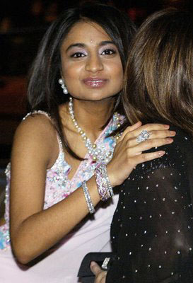 這場婚禮耗資6000萬美元。6架包租的波音飛機(jī)從世界各地接來1000位富豪親友,參加在凡爾賽最奢華的花園宮殿里舉辦的慶典,“寶萊塢”男女一號明星也都來獻(xiàn)藝。在純銀的請柬信封里,除了邀請函還有鉆石手表或金玉項(xiàng)鏈。印度最大的雜志之一《展望》不無夸張地描述說:看來若瓦妮莎要埃菲爾鐵塔作嫁妝,米塔爾也決不給別的!