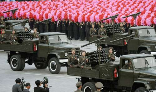 有報(bào)道說,閱兵儀式上出動(dòng)了炮兵團(tuán)、地對(duì)空導(dǎo)彈發(fā)射器以及槍支等武器。朝鮮國防委員會(huì)副委員長(zhǎng)金永春次帥等軍隊(duì)領(lǐng)導(dǎo)在指揮臺(tái)觀看了長(zhǎng)達(dá)約30分鐘的儀式。閱兵儀式后,由10萬名平壤市民舉行了盛裝游行,大學(xué)生等人進(jìn)行了火把演出。