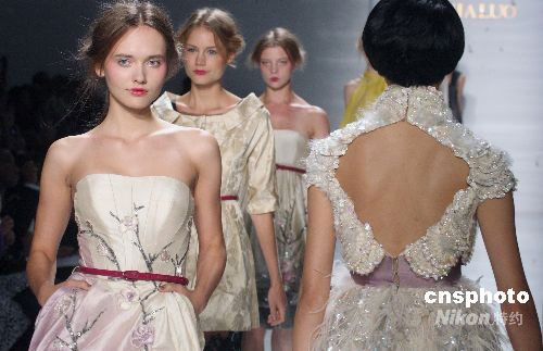 圖為世界名模參加中國(guó)女裝設(shè)計(jì)師羅崢作品展示。中新社發(fā) 錢興強(qiáng) 攝