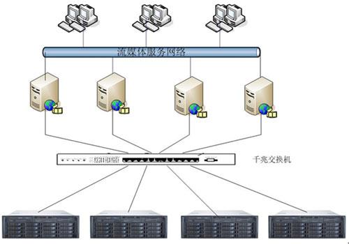 本方案通過4個(gè)視頻服務(wù)器對(duì)外提供視頻點(diǎn)播服務(wù)。在視頻服務(wù)器后端建立一個(gè)