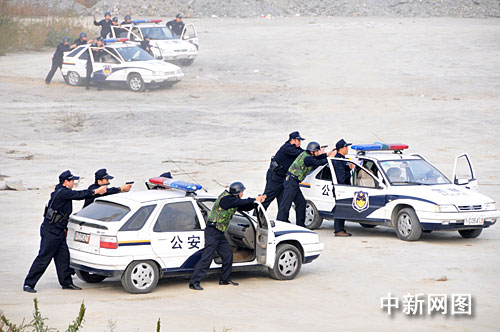 10月28日至11月2日,第三屆世界傳統(tǒng)武術(shù)節(jié)將在湖北十堰市舉辦。為及時(shí)、有效、妥善處置“武術(shù)節(jié)”期間可能發(fā)生的各類突發(fā)事故或恐怖襲擊事件,檢驗(yàn)和提高十堰市整體處置突發(fā)事件的應(yīng)急能力。10月18日上午,十堰市 “武當(dāng)利劍”反恐實(shí)戰(zhàn)演練在十堰城區(qū)浙江路一平地上舉行。兩男子劫持一輛客車上的司機(jī)、女售票員及車內(nèi)乘客共10人沖卡向浙江路方向駛?cè),?zhí)勤交警立即向市公安局110指揮中心報(bào)告。