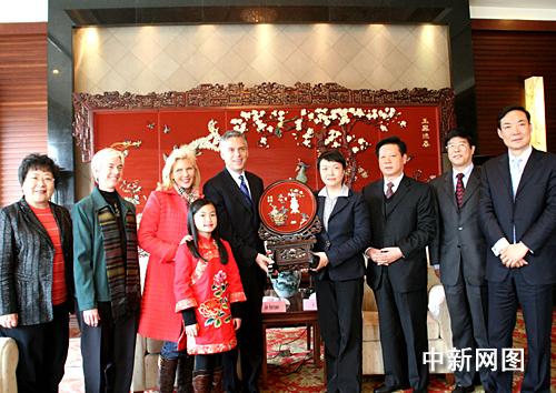 王燕文向洪博培簡(jiǎn)要介紹了揚(yáng)州的歷史文化和經(jīng)濟(jì)社會(huì)發(fā)展情況。她說,因?yàn)闂顦芬,大使先生一家和揚(yáng)州結(jié)緣。她希望大使一家在揚(yáng)州多走走、多看看,更希望楊樂意象她爸爸一樣,長(zhǎng)大以后成為中美兩國(guó)人民的友好大使。