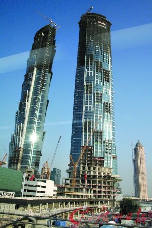 迪拜塔的發(fā)展商是Emaar公司,政府持股三成。樓高818米的迪拜塔耗資80億美元,八成物業(yè)已經(jīng)賣出。2004年動工后,受金融危機(jī)影響開放日一改再改,最新說法是2010年1月4日竣工。