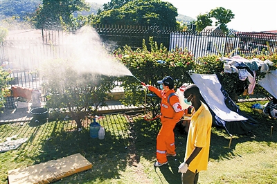 中國國際救援隊醫(yī)療分隊同時還在災(zāi)區(qū)開展了衛(wèi)生宣教、衛(wèi)生防疫工作。據(jù)侯世科介紹,海地總理府附近聚集了近千名災(zāi)民,震后衛(wèi)生條件極差,許多尸體沒有及時掩埋,災(zāi)民缺少食物、藥品,隨時可能出現(xiàn)腸道傳染病等疾病的蔓延。中國醫(yī)護人員對300多平方米的災(zāi)民聚集點進行了噴灑消毒。“我們攜帶的消毒藥用得很快,明天我們會帶更多的藥物去現(xiàn)場。”