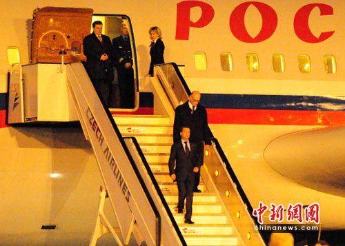 中新網(wǎng)布拉格4月7日電 俄羅斯總統(tǒng)梅德韋杰夫7日晚上離開斯洛伐克首都布拉迪斯拉發(fā)飛抵捷克首都布拉格。