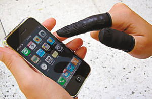 在玩iPhone時(shí),很多人確實(shí)擔(dān)心會(huì)在顯示屏上留下指痕。最后奧地利一家公司找到了解決這個(gè)問題的辦法:用乳膠制成的手機(jī)指套罩住每根手指。由于手機(jī)指套的售價(jià)是10歐元,因此該公司認(rèn)為,一定有很多消費(fèi)者戴著粉色、白色、藍(lán)色或黑色指套在大街上走。該公司還制作了一個(gè)尺碼表,幫助消費(fèi)者確定他們的手指大小。