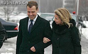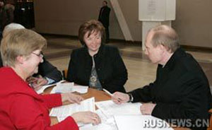 新一屆總統(tǒng)的熱門人選、俄第一副總理梅德韋杰夫偕夫人斯韋特蘭娜則在駐地附近的第二六一四號投票站出現(xiàn)。四十二歲的梅德韋杰夫投票后表示心情不錯:“春天已經(jīng)來了,雖說有點小雨,也是令人愜意的插曲。畢竟季節(jié)已經(jīng)變了。”