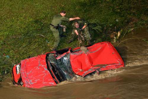 據(jù)報(bào)道,在措勒納伯縣,有多輛汽車被洪水卷走(見圖),目前車上人員生死不明。當(dāng)?shù)匾殉闪⒁粋(gè)危機(jī)應(yīng)急指揮部。在容吉根地區(qū),大量房屋浸泡在水中,電力供應(yīng)中斷。在上施瓦本地區(qū),一列列車撞上了被暴風(fēng)雨刮倒的樹木,火車司機(jī)生命垂危,已被緊急送往醫(yī)院救治。另有3名婦女被淹死。