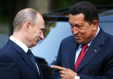 俄羅斯總理普京(左)與委內(nèi)瑞拉總統(tǒng)查韋斯(右)