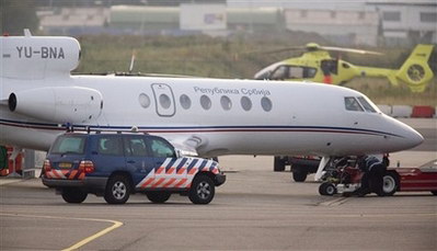 引渡卡拉季奇的飛機抵達荷蘭。
