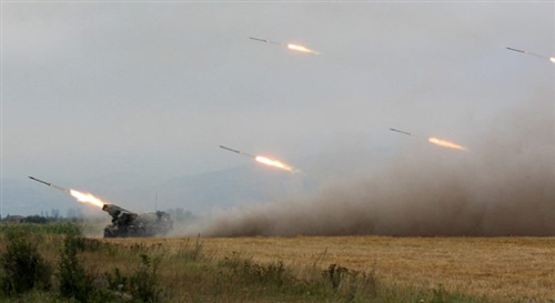 格魯吉亞軍隊發(fā)射火箭。