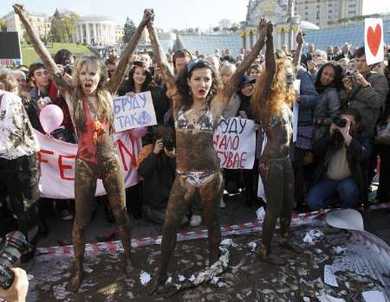 中新網(wǎng)10月20日電 綜合報道,一個名為“Femen”的烏克蘭青年組織19日走上基輔街頭,表演泥漿摔跤節(jié)目,以抗議“骯臟的政治和選舉技術(shù)”。女青年希望以這一方式吸引人們的注意,加入抗議提前議會選舉的行列。