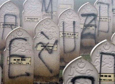 遭到涂鴉的穆斯林墓碑
