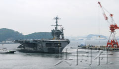 中新網(wǎng)5月6日電 據(jù)日本共同社報(bào)道,美國核動力航空母艦“喬治-華盛頓”號為在太平洋上進(jìn)行試航,于6日上午9時(shí)半許駛出作為母港的美國海軍駐日本的橫須賀基地。該航母于去年9月被部署在橫須賀,此次出港為去年12月赴韓國釜山海域參加韓國海軍典禮以來的第二次。
