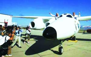 英國維珍集團(tuán)董事長理查德·布蘭森28日首次向外界展示公司太空游項目關(guān)鍵裝備——運(yùn)載載人飛船的母船“白騎士二號”。預(yù)計太空游首發(fā)團(tuán)將于2010年成行。