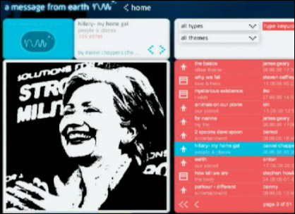 發(fā)送的信息中包含了英國倫敦的標(biāo)志性建筑“倫敦眼”、“愛丁堡城堡”的照片,希拉里·克林頓及一些知名電視主持人的照片,還包括Bebo網(wǎng)站的網(wǎng)友書寫的關(guān)于對生命、理想及地球風(fēng)景的詩歌文章等。其中一則信息寫道:“我希望我能活著看到兩個世界相互交流的那一天!