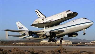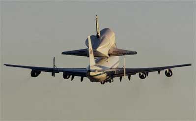 美國(guó)“奮進(jìn)”號(hào)航天飛機(jī)10日從加利福尼亞啟程,“騎”在在一架波音747大型貨機(jī)背上,前往佛羅里達(dá)的肯尼迪航天中心的“老家”。由于天氣不好,“奮進(jìn)”號(hào)在結(jié)束了本次太空之旅后,因佛羅里達(dá)天氣不好,只能備降在加州的愛德華茲空軍基地。