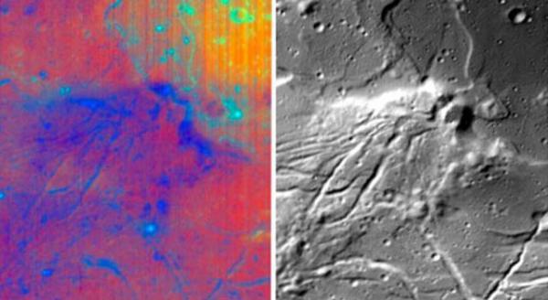 此圖是由該飛船裝配的美國(guó)宇航局月球礦物質(zhì)繪圖儀拍攝。月球礦物質(zhì)繪圖儀是"月球初航1號(hào)"首個(gè)提供月球表面高清晰度圖像的儀器,其所拍攝的這張彩色圖像不僅具備傳統(tǒng)二維圖像的長(zhǎng)和寬,還通過顏色呈現(xiàn)其空間尺度。這種彩色是由28種不同波長(zhǎng)的光線從月球上反射形成的。其中,從藍(lán)色至紅色揭示了巖石和礦物成份的變化,綠色則代表像輝石這樣含鐵豐富的礦石。黑白圖像是單個(gè)波長(zhǎng)的光線所獲得的圖像,可以重新認(rèn)識(shí)這一月球表面區(qū)域的結(jié)構(gòu)和形成。