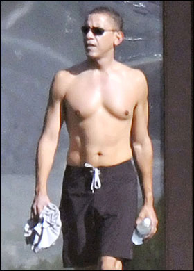 英報刊登奧巴馬度假半裸照 展示完美肌肉(圖)