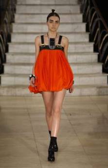 朱利安•麥當(dāng)勞就表示,這場(chǎng)時(shí)裝秀設(shè)計(jì)重點(diǎn)是以軟毛無(wú)光澤與光澤和玻璃碎片來(lái)營(yíng)造都市時(shí)尚感。而另外一位以簡(jiǎn)約摩登著稱(chēng)的英國(guó)設(shè)計(jì)師杰斯波•康蘭則是以黑色基調(diào)貫穿全場(chǎng),在歌劇卡門(mén)的音樂(lè)下,一位位模特兒以馬甲修飾身材曲線,充滿復(fù)古風(fēng)情。杰斯波•康蘭說(shuō),大量使用黑色的靈感來(lái)自X光線,而外部堅(jiān)挺內(nèi)部卻又柔軟的展現(xiàn),讓女性同時(shí)展現(xiàn)性感、調(diào)皮與自信。