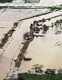 重災(zāi)區(qū)博葛禮已有逾1萬人死亡,95%屋子被摧毀,19萬人無家可歸。緬甸軍政府指,風(fēng)速達190公里的“納爾吉斯”卷起3.5米高巨浪,沖走低洼地區(qū)村落半數(shù)房屋,大量災(zāi)民在巨浪中溺斃。美國宇航局衛(wèi)星圖片顯示,緬甸西南部沿海平原完全被水淹沒。聯(lián)合國稱,受災(zāi)人口約2400萬人,接近全國一半人口。