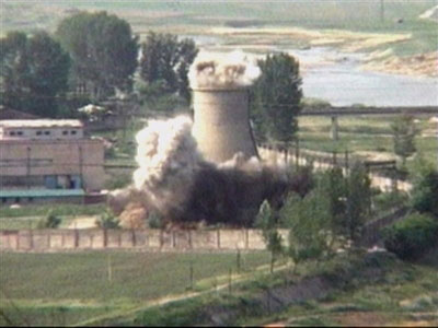 圖:朝鮮當(dāng)?shù)貢r間17時05分炸毀寧邊核設(shè)施冷卻塔