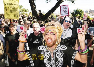 中新網(wǎng)7月20日電 澳大利亞悉尼的世界青年日活動(dòng)19日繼續(xù)進(jìn)行,而示威者為表達(dá)對(duì)天主教教宗本篤十六世反同性戀及反避孕立場(chǎng)的不滿,便乘朝圣游行隊(duì)伍中的年輕教徒通過市內(nèi)的同性戀區(qū)時(shí),向他們投擲安全套。