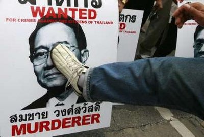 反政府示威者抗議總理頌猜采用強(qiáng)制手段鎮(zhèn)壓民眾。當(dāng)日,示威者封鎖了一條商業(yè)街道,并四處散發(fā)記錄7日警民對(duì)峙的碟片及照片,還有人高舉稱(chēng)警察總長(zhǎng)和頌猜為“殺手”的標(biāo)語(yǔ)。