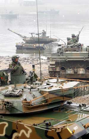 中新網(wǎng)2月5日電 據(jù)韓聯(lián)社報道,5日上午,韓美在京畿道漣川郡進(jìn)行了聯(lián)合戰(zhàn)車渡河演習(xí)。