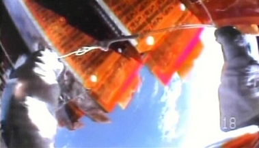 在6小時的工作中,美國宇航員帕拉辛斯基嘗試修補一塊在上月底在修展開時損毀的太陽能板的一道裂縫。據(jù)悉,此次修復工作是成功的,太陽能翼板將能全面張開,伸展到適當位置。
