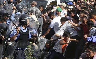 示威者用石塊投擲防暴警察,并與警察發(fā)生沖突,數(shù)十名警察、平民受傷后被送往醫(yī)院。