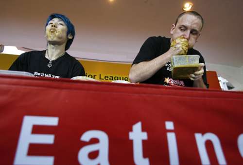 小林在競食界得獎(jiǎng)無數(shù),曾連續(xù)六年贏得美國紐約知名的“內(nèi)森”熱狗競食大賽冠軍,但在二○○七年和剛過去的七月四日連續(xù)兩屆輸給切斯納特飲恨。