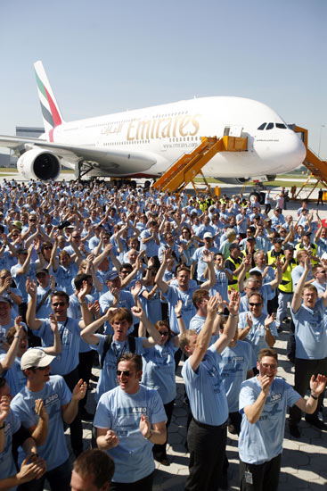 據(jù)悉, 28日在德國漢堡附近的芬肯韋德,空中客車公司總裁兼首席執(zhí)行官托馬斯•恩德斯把A380客機中的第一架交付給阿聯(lián)酋航空公司。