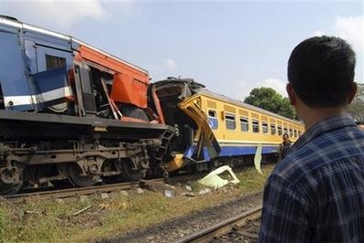 警方稱,事故發(fā)生在距印尼首都雅加達(dá)西北部185英里處的村莊附近,一輛緩慢行駛的客運(yùn)貨車與一個(gè)已經(jīng)入泊的火車頭相撞,造成9人死亡,數(shù)十人受傷。