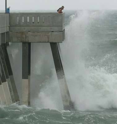 9月6日,颶風(fēng)“漢娜”外圍已經(jīng)抵達(dá)美國(guó),掀起海浪。