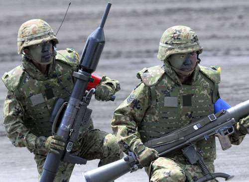 日本陸上自衛(wèi)隊(duì)上月在靜岡縣舉行軍事演習(xí)。