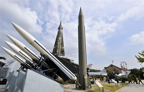 10月8日,韓國軍人在朝鮮戰(zhàn)爭紀(jì)念館展示的朝鮮導(dǎo)彈模型前走過。韓國媒體報(bào)道稱朝鮮7日發(fā)射了短程導(dǎo)彈。