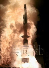 日本宙斯盾艦“鳥!碧柊l(fā)射“標(biāo)準(zhǔn)3”(SM3)型攔截導(dǎo)彈。