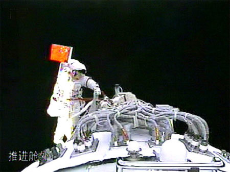中國(guó)宇航員太空漫步。